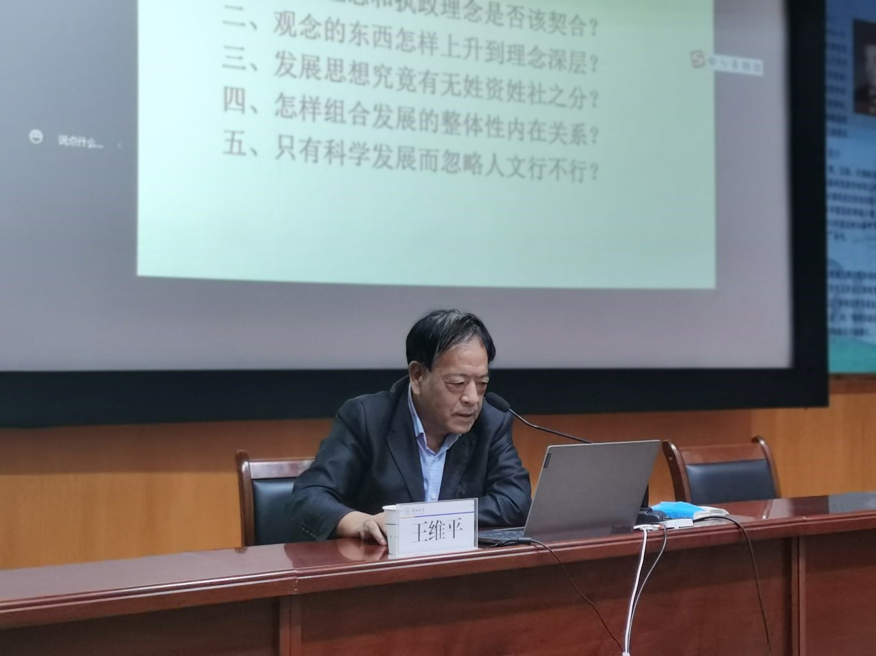 王维平教授以《新发展理念与高质量发展——“三新一高”的理论与实践》为主题,从中国共产党发展思想的演进、新发展理念的提出过程回顾、新发展理念的内在逻辑结构、新发展理念的丰富理论内涵、三新一高理论的时代性解读、三新一高理论的实践性应对等六个方面展开报告,层层递进,内涵深刻。王维平在报告中指出,当前,当今世界正在发生着复杂而深刻的变化,也给高校的学生工作提出了新的要求。各位学工人员要深入学习理论知识,善于思考,并将所学应用到实际工作中去。