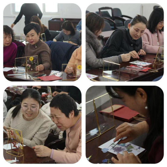 第一个活动环节是制作植物压花相框。老师们亲自设计并动手制作,完成了属于自己的手工相框。花影跃然于镜面之上,留下了温馨美好的回忆。