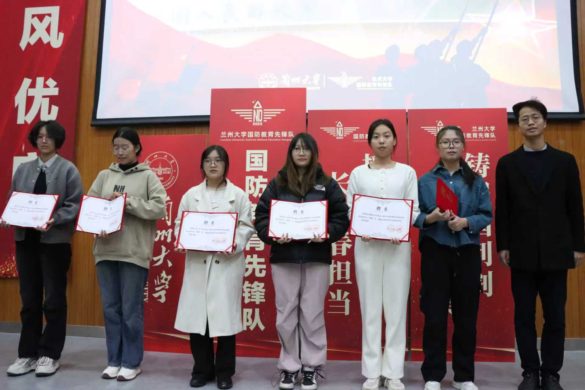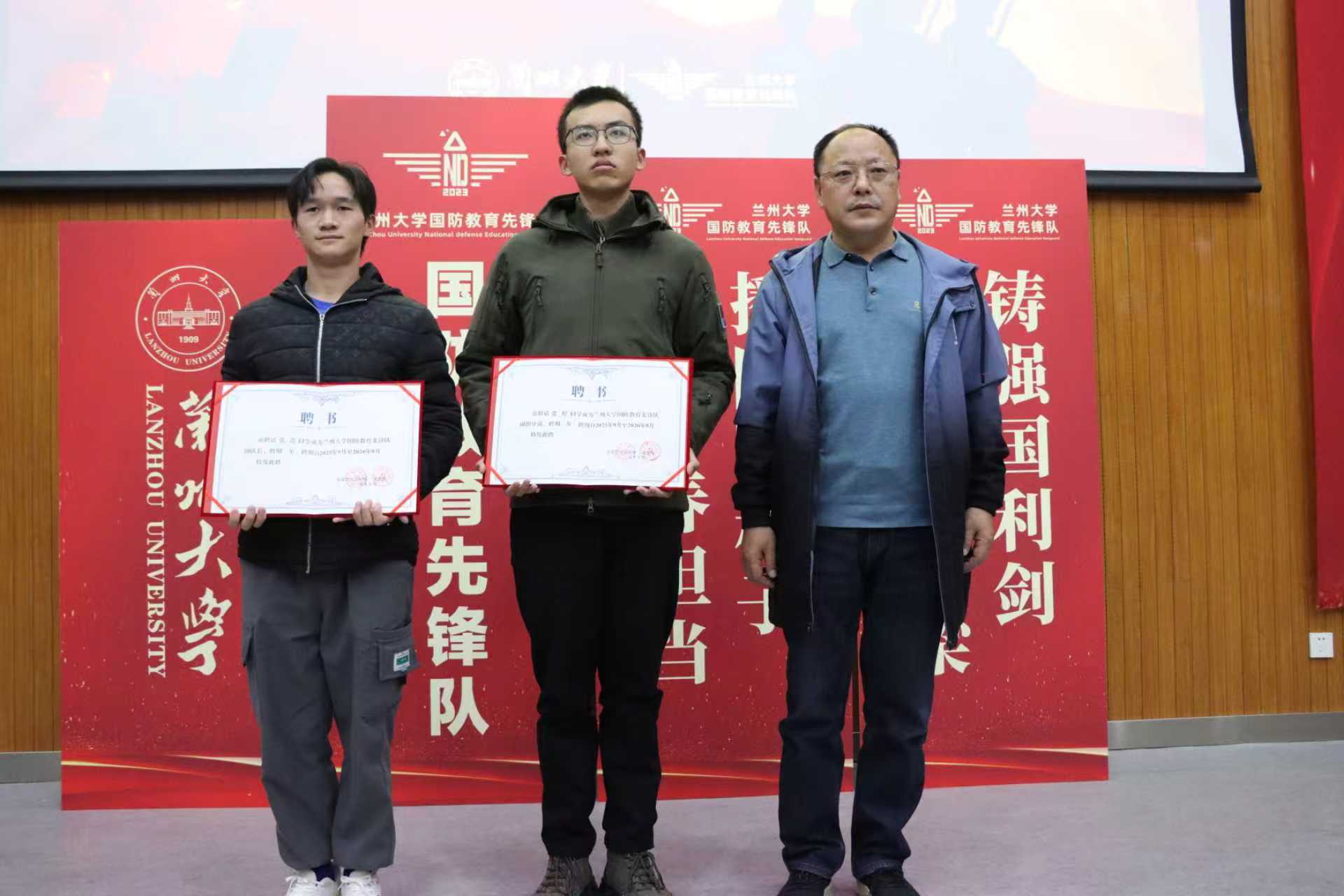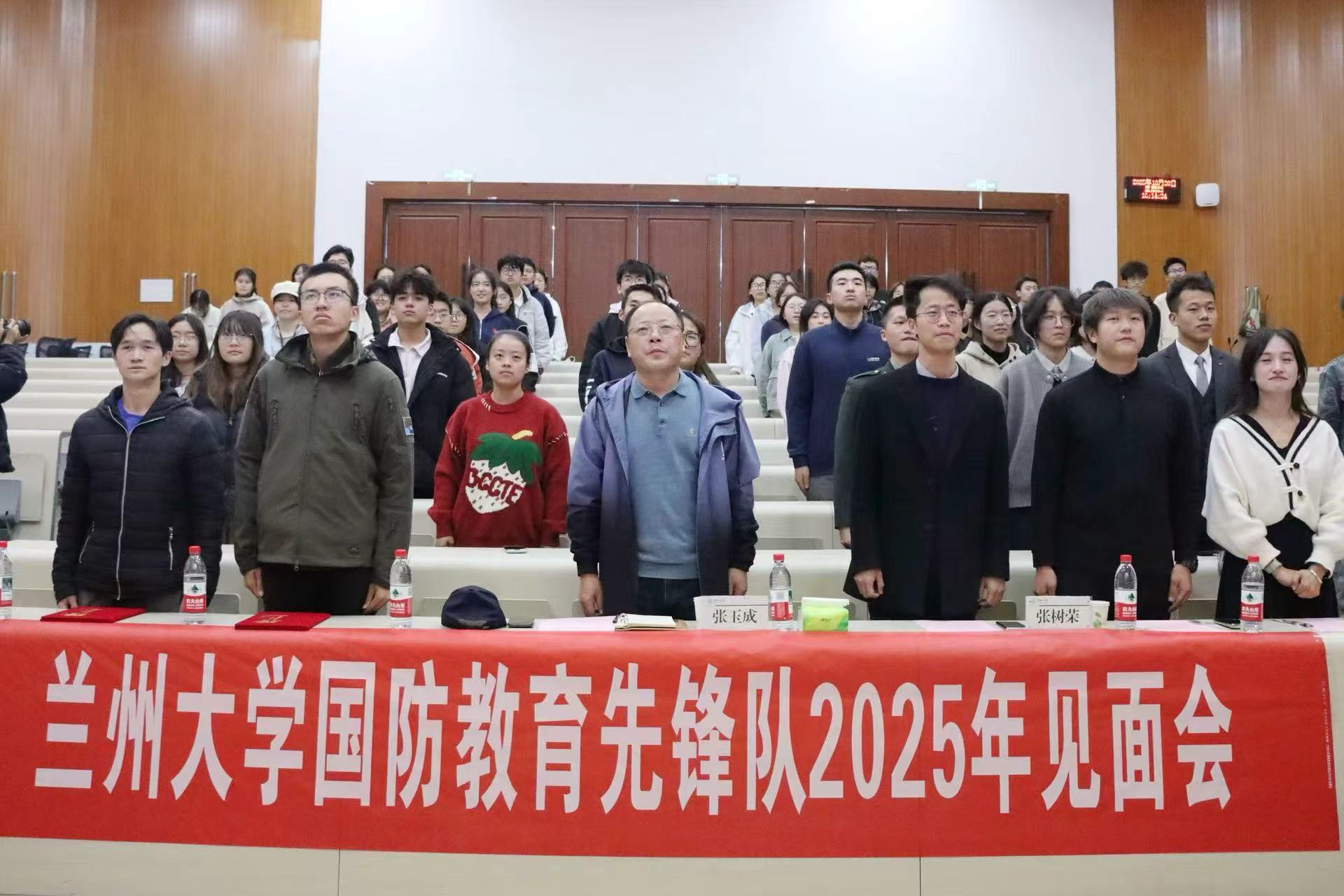 最后,全体成员起立奏唱兰州大学校歌,并在仪式结束后合影留念。本次活动在庄严而热烈的氛围中圆满结束,不仅增强了新老成员的归属感和凝聚力,更明确了先锋队未来的发展方向。新成员们纷纷表示,将以此为起点,积极投身国防教育实践,为我校国防教育事业贡献自己的青春力量。