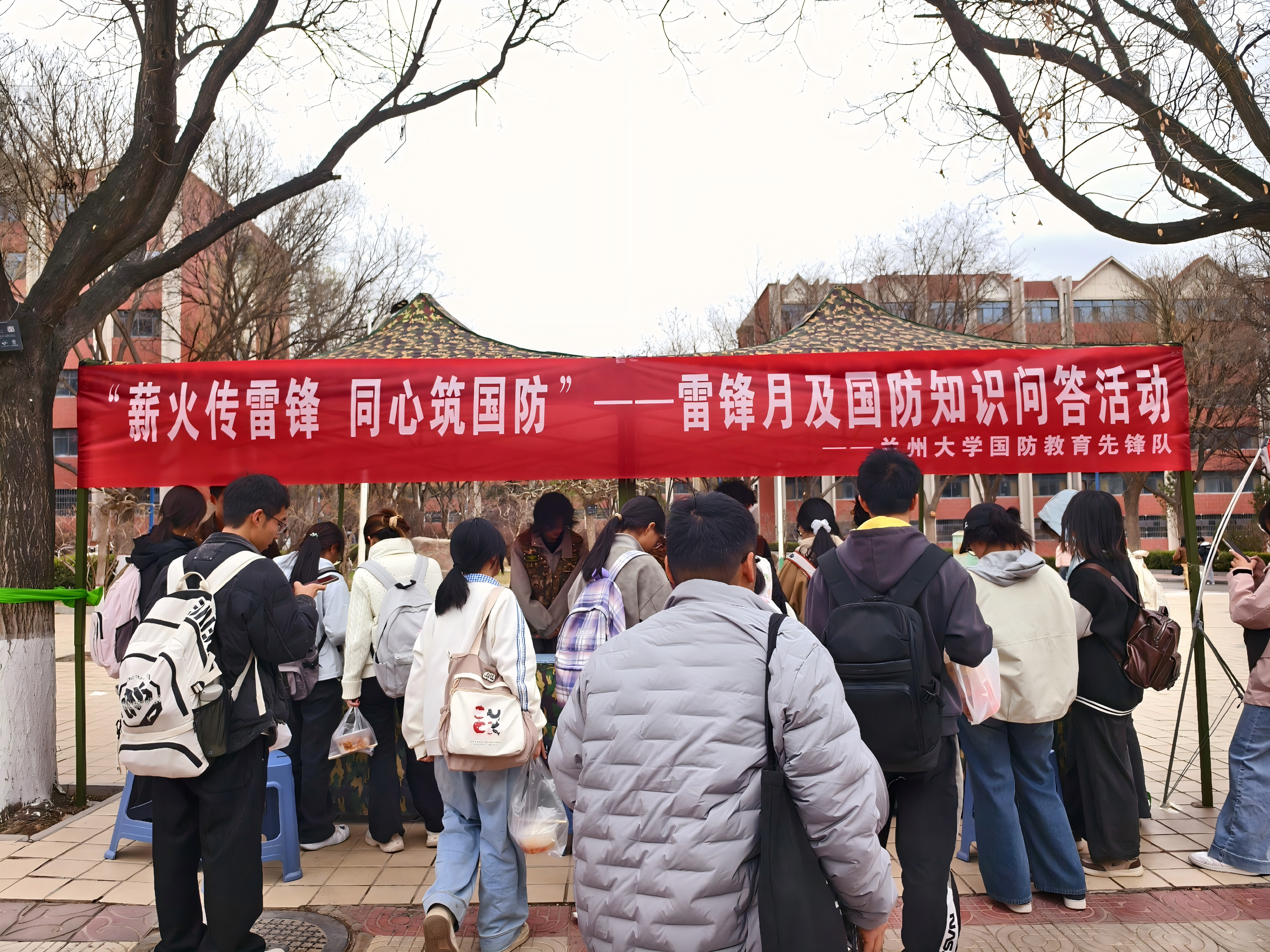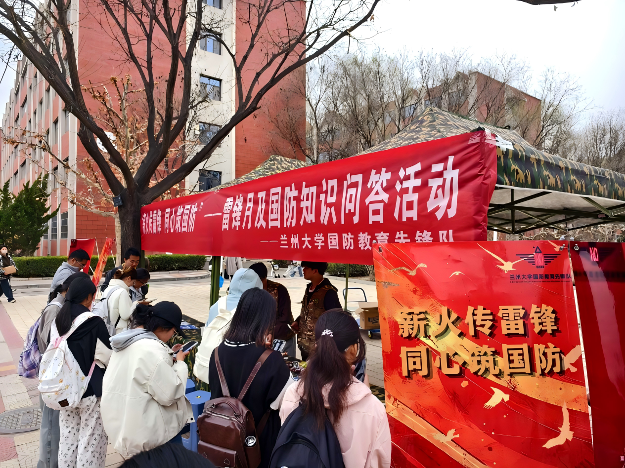 为进一步弘扬新时代雷锋精神、厚植兰大师生家国情怀。近日,兰州大学国防教育先锋队在榆中校区举办“薪火传雷锋,同心筑国防”雷锋月及国防知识问答活动。全校500余名师生参与,在春日的校园里掀起一股“学雷锋、强国防”的热潮。